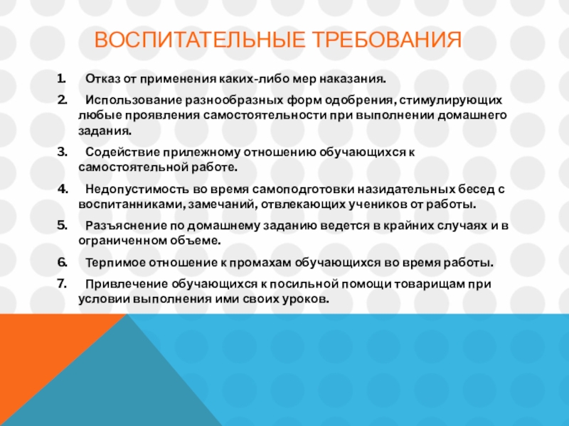 Слайд 10 ВОСПИТАТЕЛЬНЫЕ ТРЕБОВАНИЯ