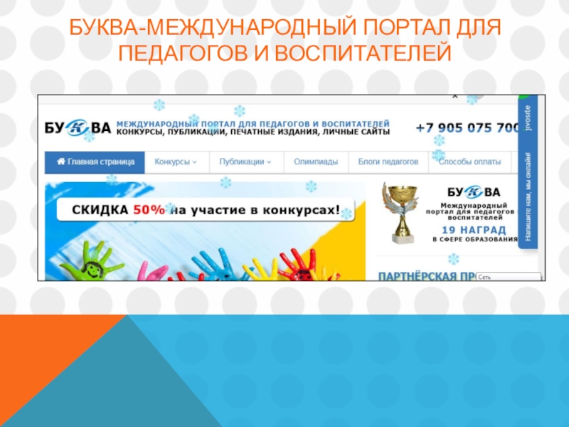 Слайд 27БУКВА-МЕЖДУНАРОДНЫЙ ПОРТАЛ ДЛЯ ПЕДАГОГОВ И ВОСПИТАТЕЛЕЙ
