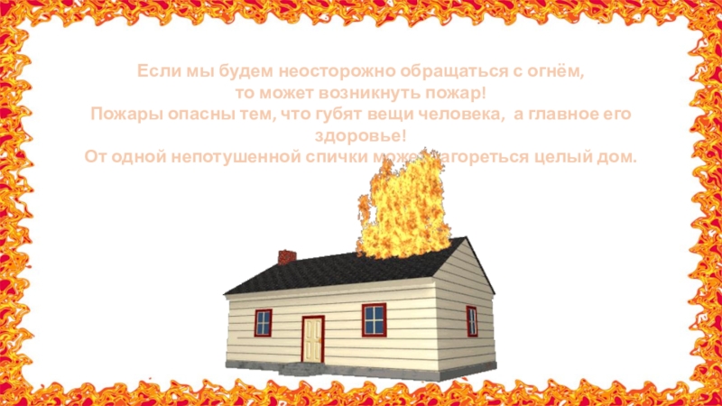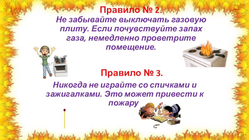 Никогда не играйте со спичками и зажигалками. Это может привести к пожару.