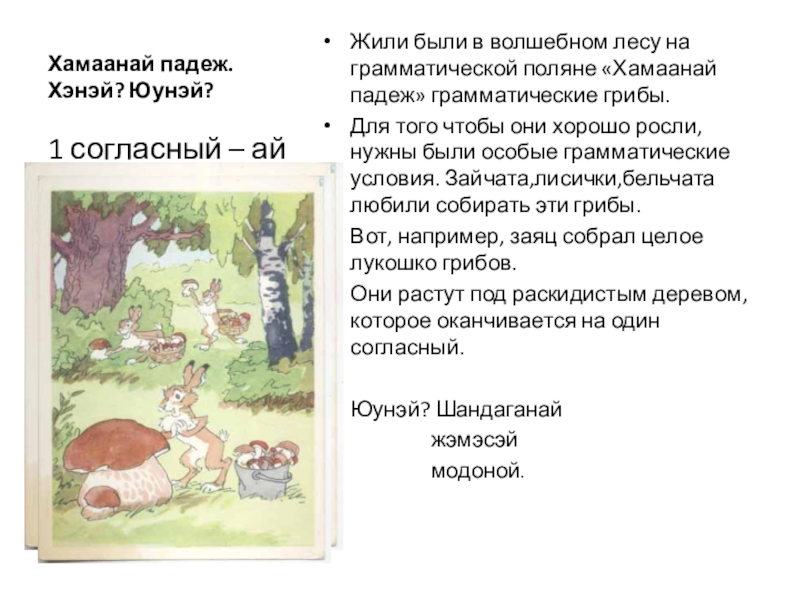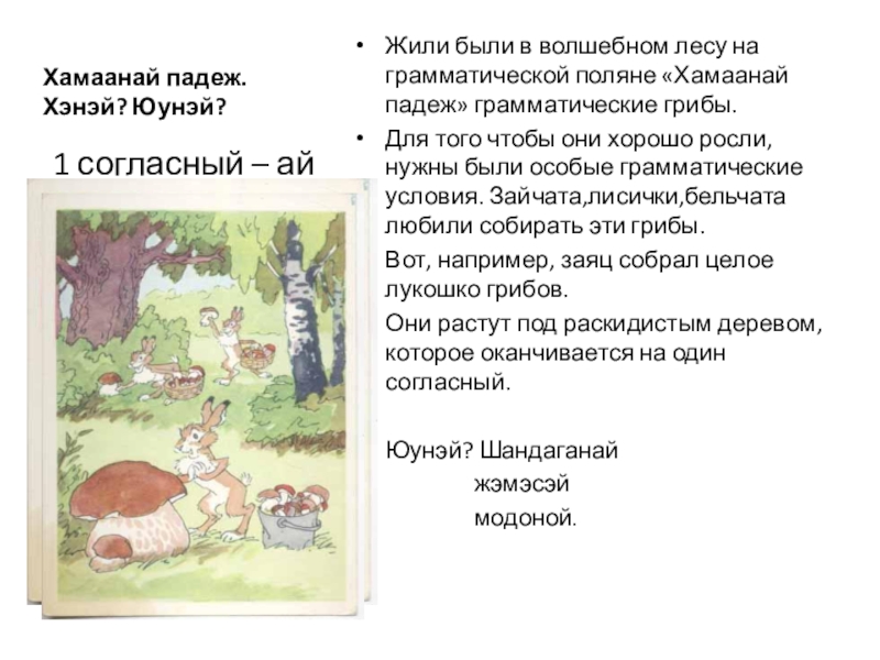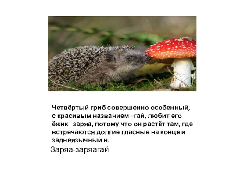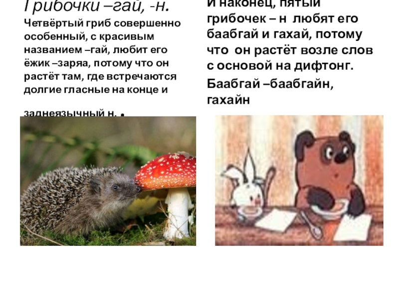И наконец, пятый грибочек – н любят его баабгай и гахай, потому что он растёт возле слов с основой на дифтонг.