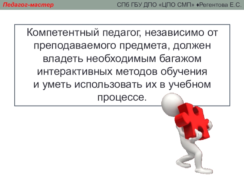 предмета, должен владеть необходимым багажом интерактивных методов обучения и уметь использовать их в учебном процессе.
