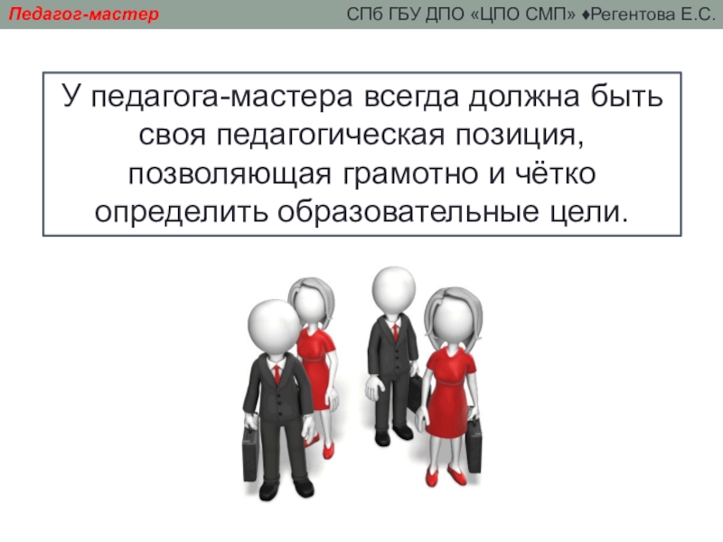 своя педагогическая позиция, позволяющая грамотно и чётко определить образовательные цели.