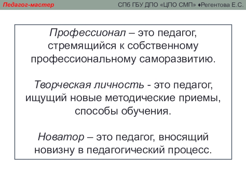 СПб ГБУ ДПО «ЦПО СМП» ♦Регентова Е.С.
