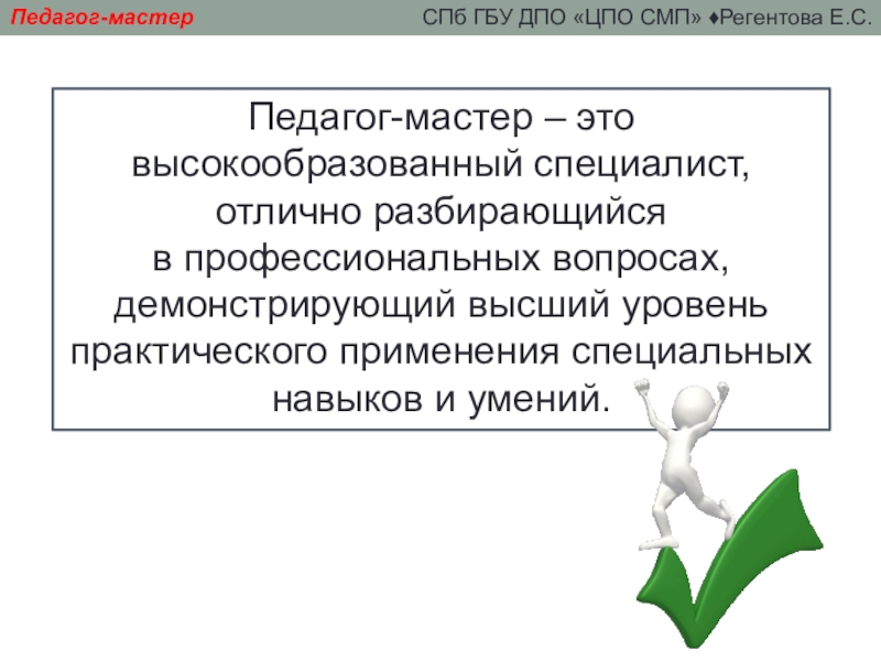 способен быстро решать профессиональные педагогические задачи и становится мастером, профессионалом, новатором.