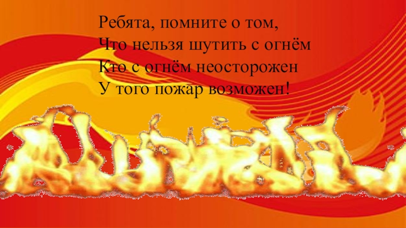 Слайд 2Ребята, помните о том, Что нельзя шутить с огнём Кто с огнём неосторожен У