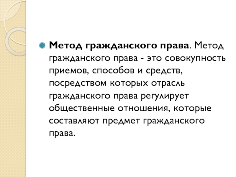 и средств, посредством которых отрасль гражданского права регулирует общественные отношения, которые составляют предмет гражданского права.