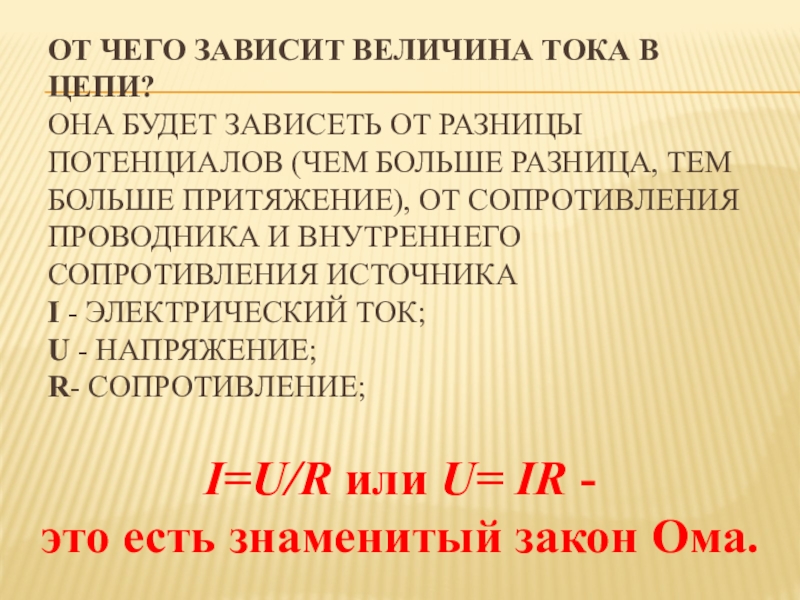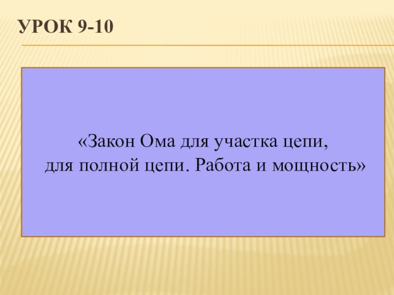 «Закон Ома для участка цепи, для полной цепи. Работа и мощность