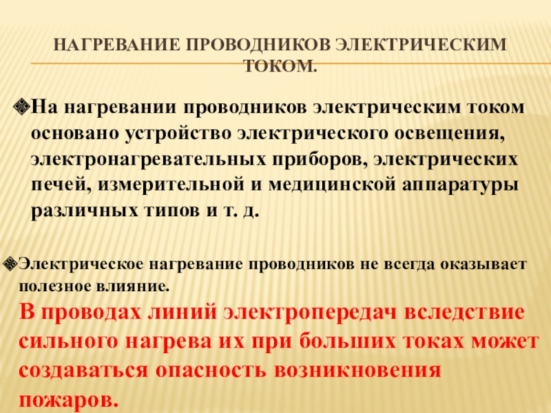 «Нагревание проводников электрическим током. Расчет сечения проводов».