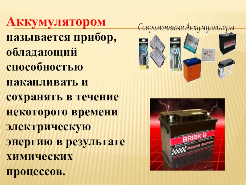 Слайд 85Аккумулятором называется прибор, обладающий способностью накапливать и сохранять в течение некоторого