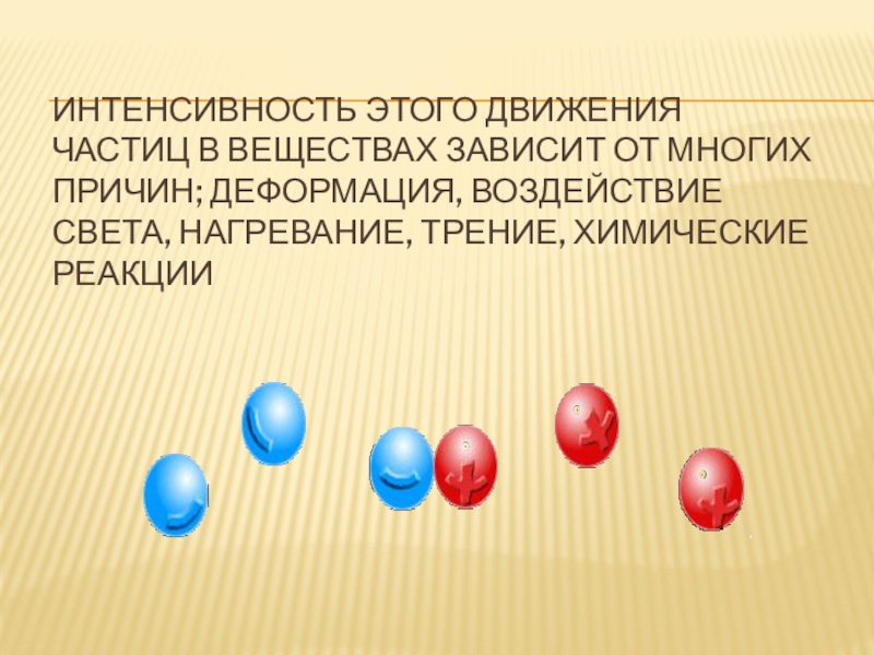 Слайд 8Интенсивность этого движения частиц в веществах зависит от многих причин; деформация,