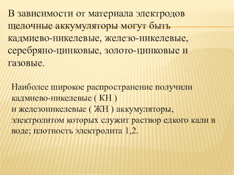 Слайд 93В зависимости от материала электродов щелочные аккумуляторы могут быть