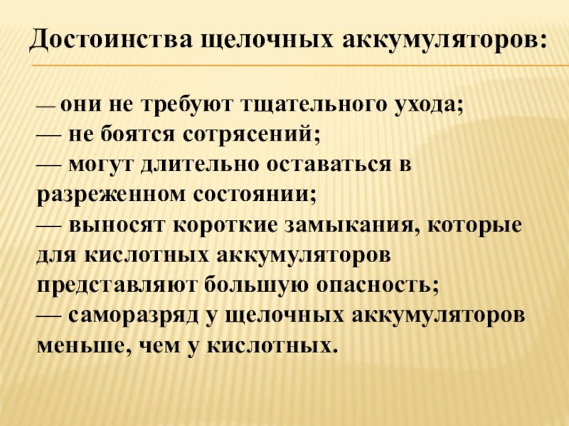 — выносят короткие замыкания, которые для кислотных аккумуляторов представляют большую опасность;
