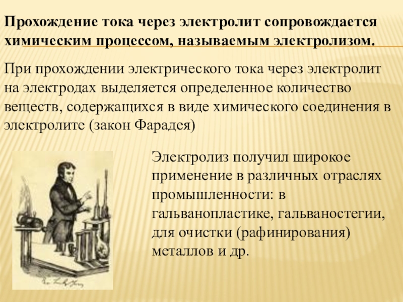 Слайд 81Прохождение тока через электролит сопровождается химическим процессом, называемым электролизом.