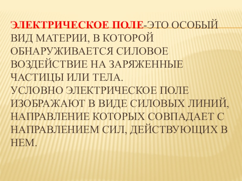 Слайд 21Электрическое поле-это особый вид материи, в которой обнаруживается силовое воздействие на