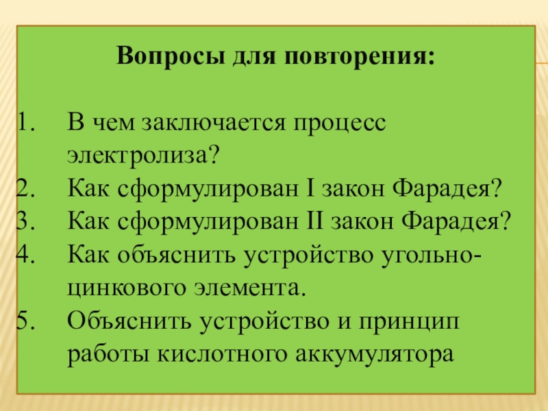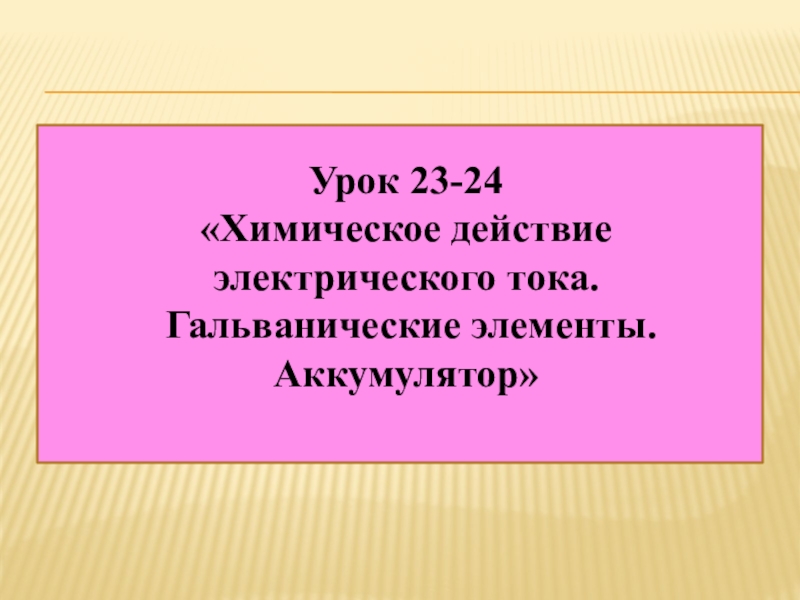 «Химическое действие электрического тока. Гальванические элементы. Аккумулятор»