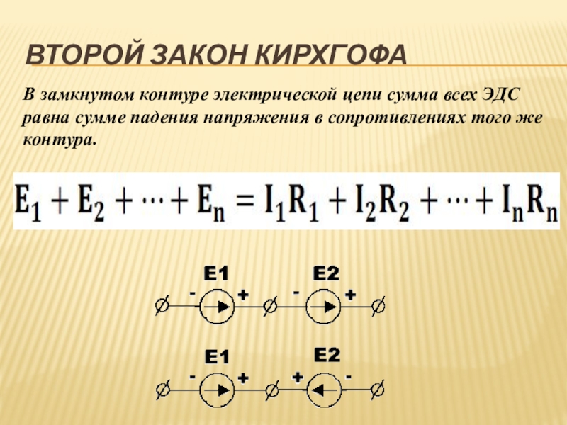 В замкнутом контуре электрической цепи сумма всех ЭДС равна