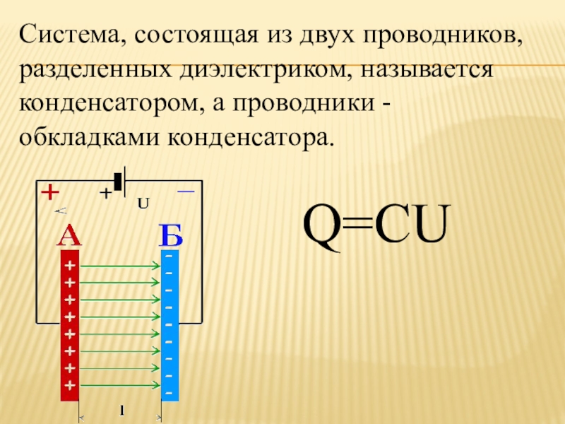 Слайд 27Система, состоящая из двух проводников, разделенных диэлектриком, называется конденсатором, а проводники