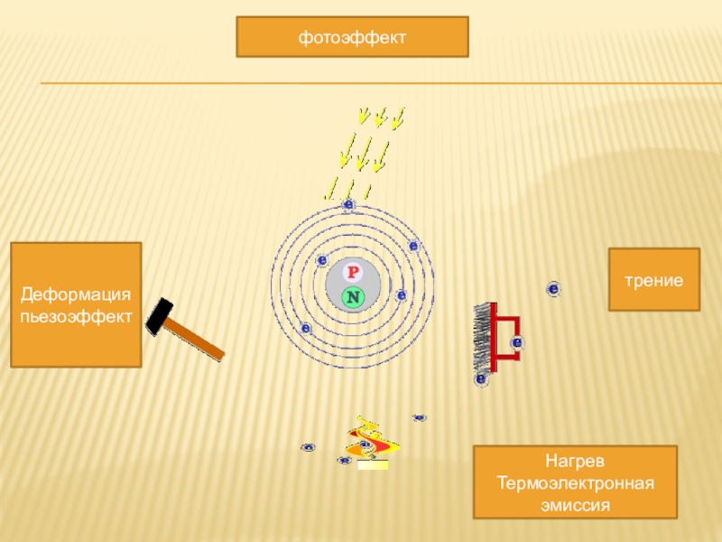 С помощью трения, нагревания, с помощью света, деформации, химических реакций и т.д.