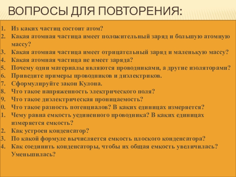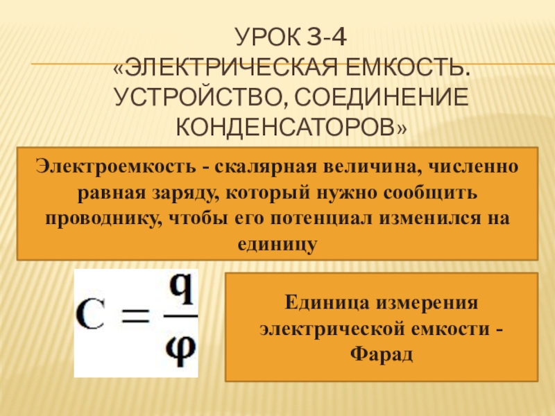 «Электрическая емкость. Устройство, соединение конденсаторов»