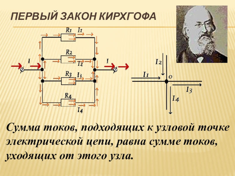 Cумма токов, подходящих к узловой точке электрической цепи, равна