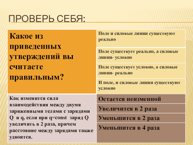 Слайд 19Cила взаимодействия двух точечных неподвижных заряженных тел в вакууме направлена вдоль