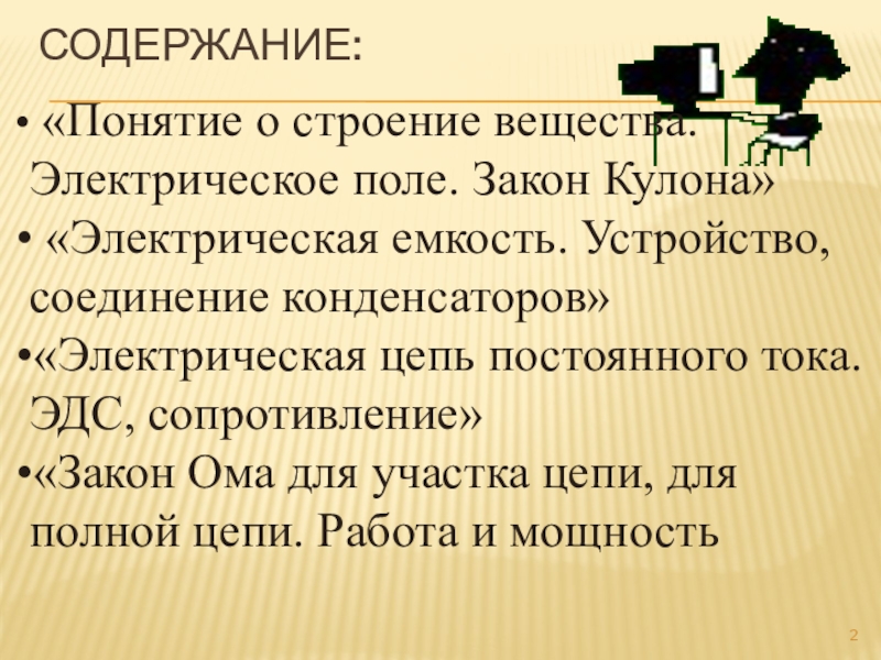 Понятие о строение вещества. Электрическое поле. Закон Кулона