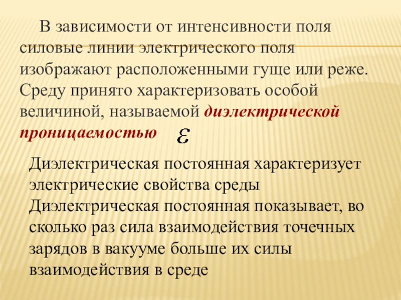 гуще или реже. Среду принято характеризовать особой величиной, называемой диэлектрической проницаемостью