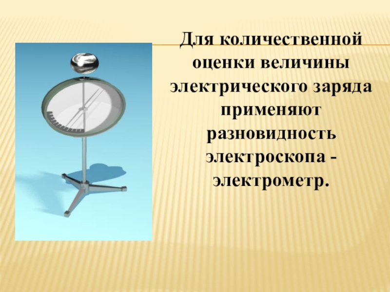 Слайд 16Для количественной оценки величины электрического заряда применяют разновидность электроскопа - электрометр.