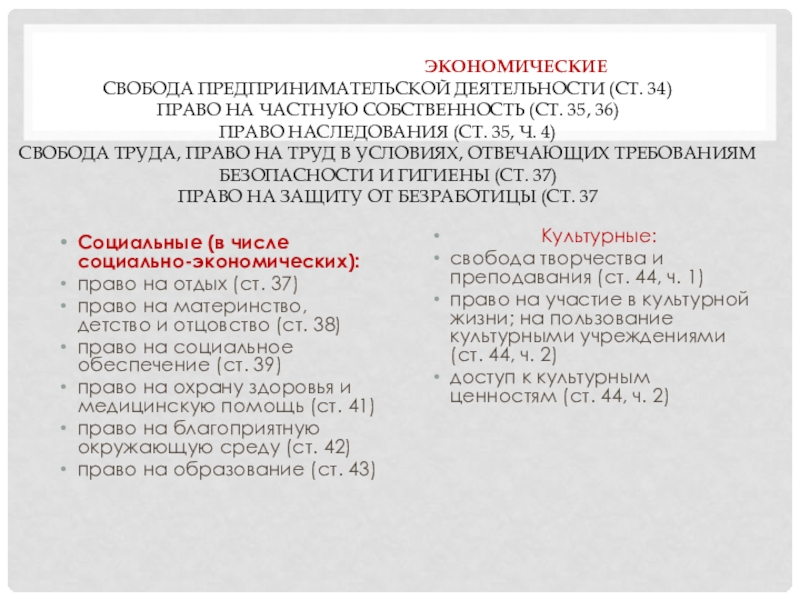 право на частную собственность (ст. 35, 36)