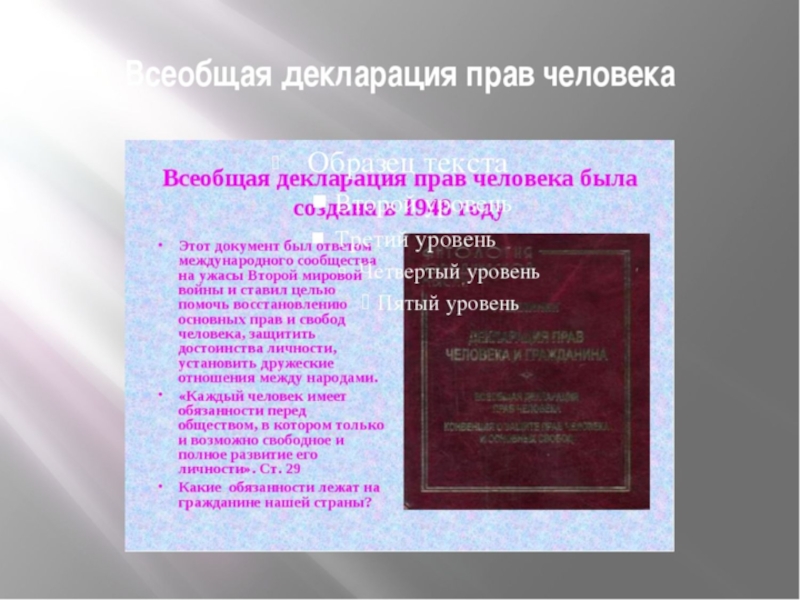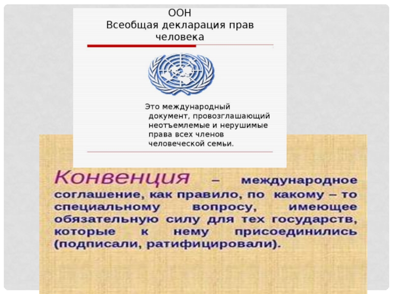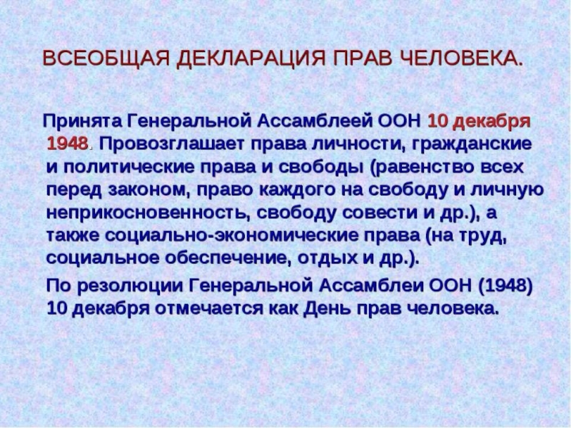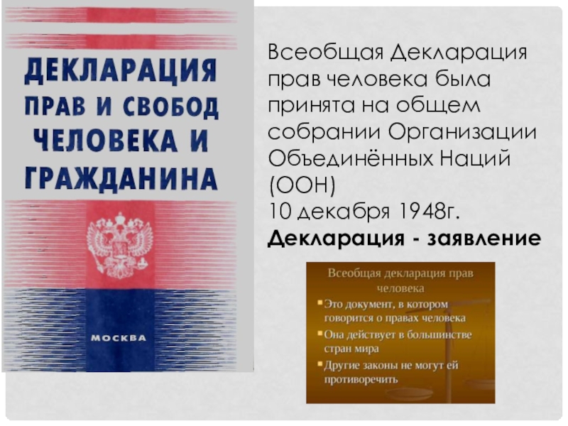 Слайд 9Всеобщая Декларация прав человека была принята на общем собрании Организации Объединённых