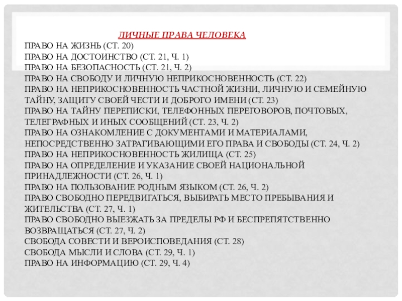 ЛИЧНЫЕ ПРАВА ЧЕЛОВЕКА