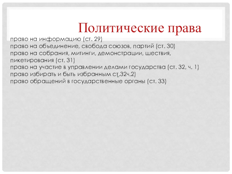 право на собрания, митинги, демонстрации, шествия, пикетирования (ст. 31)