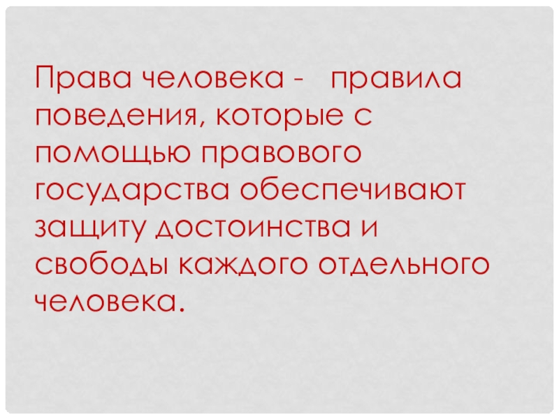 Слайд 13Права человека - правила поведения, которые с помощью правового государства