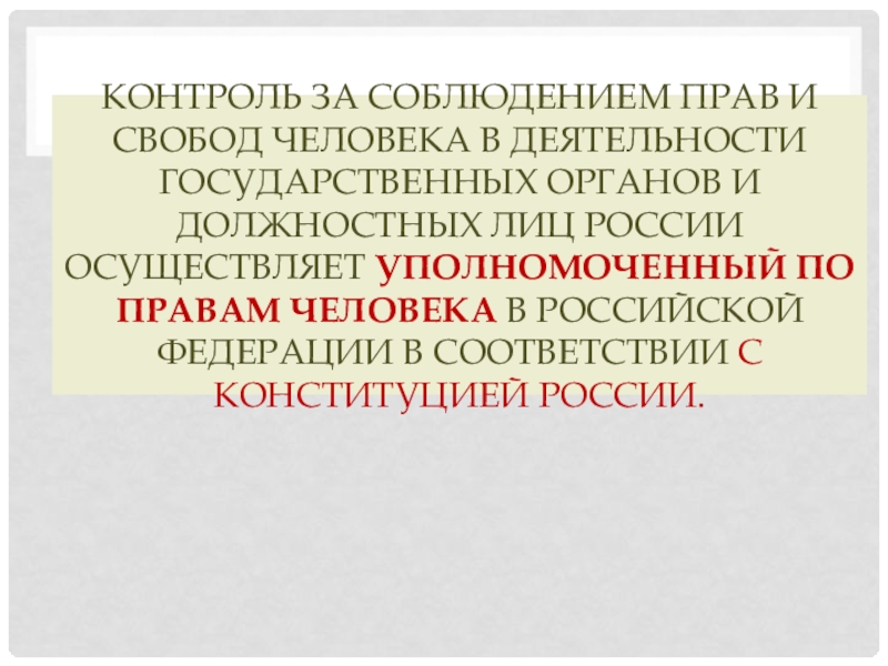 и должностных лиц России осуществляет уполномоченный по правам человека в Российской Федерации в соответствии с Конституцией России.