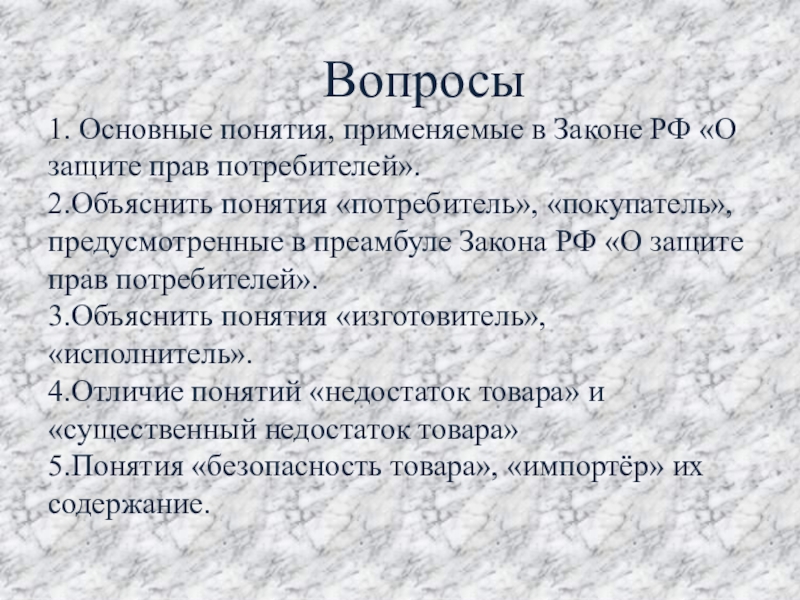 1. Основные понятия, применяемые в Законе РФ «О защите прав потребителей».
