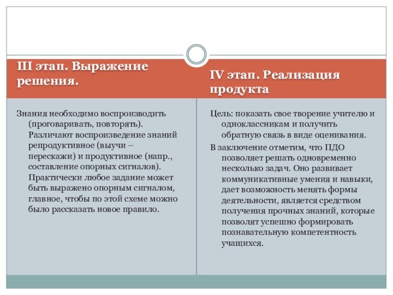 В заключение отметим, что ПДО позволяет решать одновременно несколько задач. Оно развивает коммуникативные умения и навыки, дает возможность менять формы деятельности, является средством получения прочных знаний, которые позволят успешно формировать познавательную компетентность учащихся.