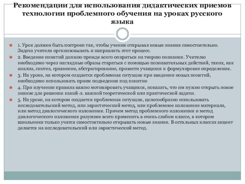 составить рекомендации по использованию методов и приемов технологии проблемного обучения для повышения качества знания обучающихся;