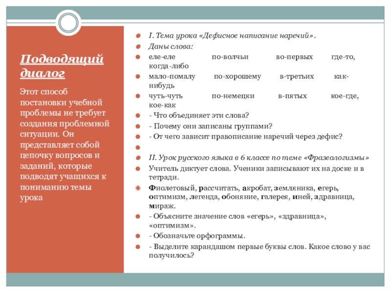 3. На уроке, на котором создается проблемная ситуация при введении новых понятий, необходимо использовать прием подведения под понятие
