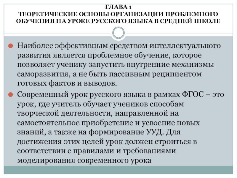 Современный урок русского языка в рамках ФГОС – это урок, где учитель обучает учеников способам творческой деятельности, направленной на самостоятельное приобретение и усвоение новых знаний, а также на формирование УУД. Для достижения этих целей урок должен строиться в соответствии с правилами и требованиями моделирования современного урока