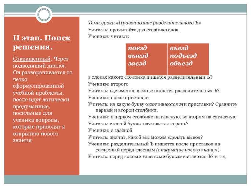 Учитель: перед какими гласными буквами ставится Ъ? и т.д.