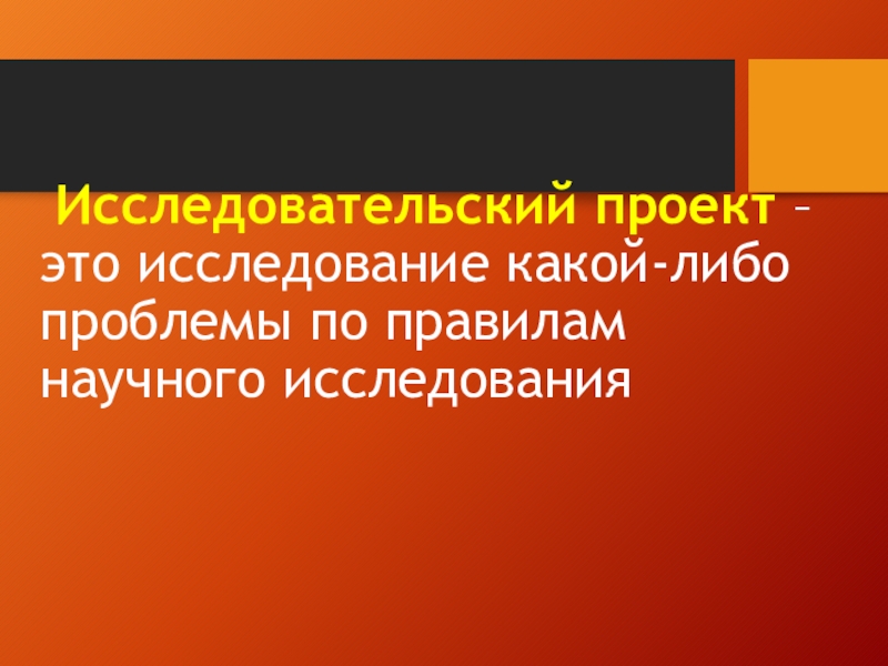 Слайд 12 Исследовательский проект – это исследование какой-либо проблемы по правилам научного