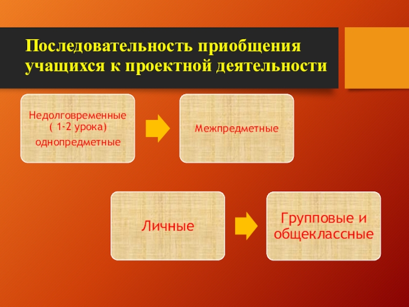 Слайд 17Последовательность приобщения учащихся к проектной деятельности