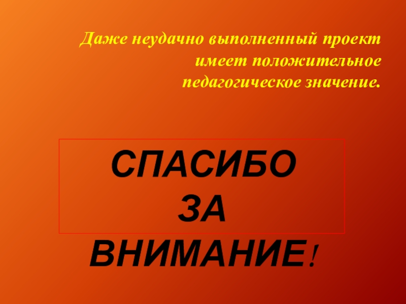 Даже неудачно выполненный проект имеет положительное педагогическое значение.СПАСИБОЗА ВНИМАНИЕ!