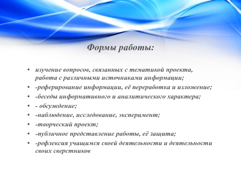 изучение вопросов, связанных с тематикой проекта, работа с различными источниками
