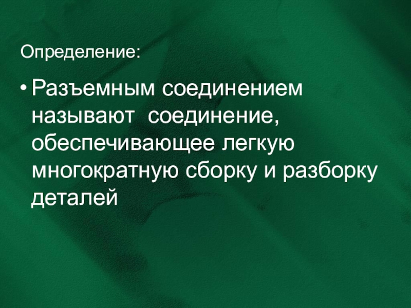 Разъемным соединением называют соединение, обеспечивающее легкую многократную сборку и разборку деталей