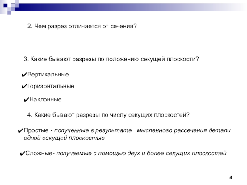 4. Какие бывают разрезы по числу секущих плоскостей?