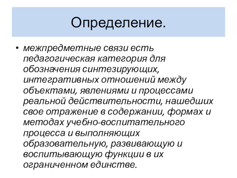 межпредметные связи есть педагогическая категория для обозначения синтезирующих, интегративных отношений между