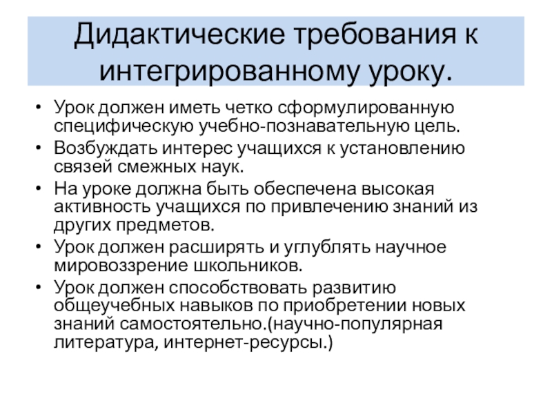 Урок должен расширять и углублять научное мировоззрение школьников.