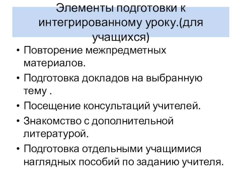 Слайд 9Элементы подготовки к интегрированному уроку.(для учащихся)