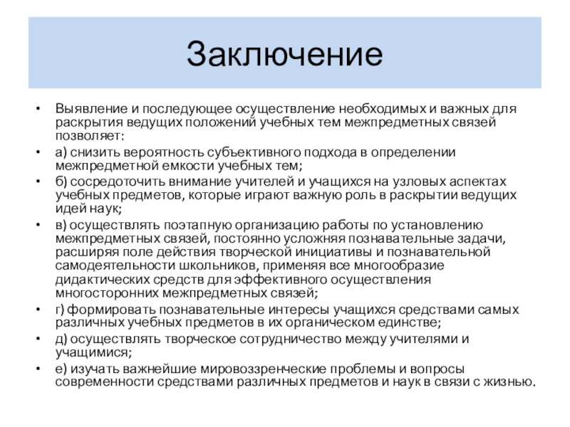 в) осуществлять поэтапную организацию работы по установлению межпредметных связей, постоянно усложняя познавательные задачи, расширяя поле действия творческой инициативы и познавательной самодеятельности школьников, применяя все многообразие дидактических средств для эффективного осуществления многосторонних межпредметных связей;